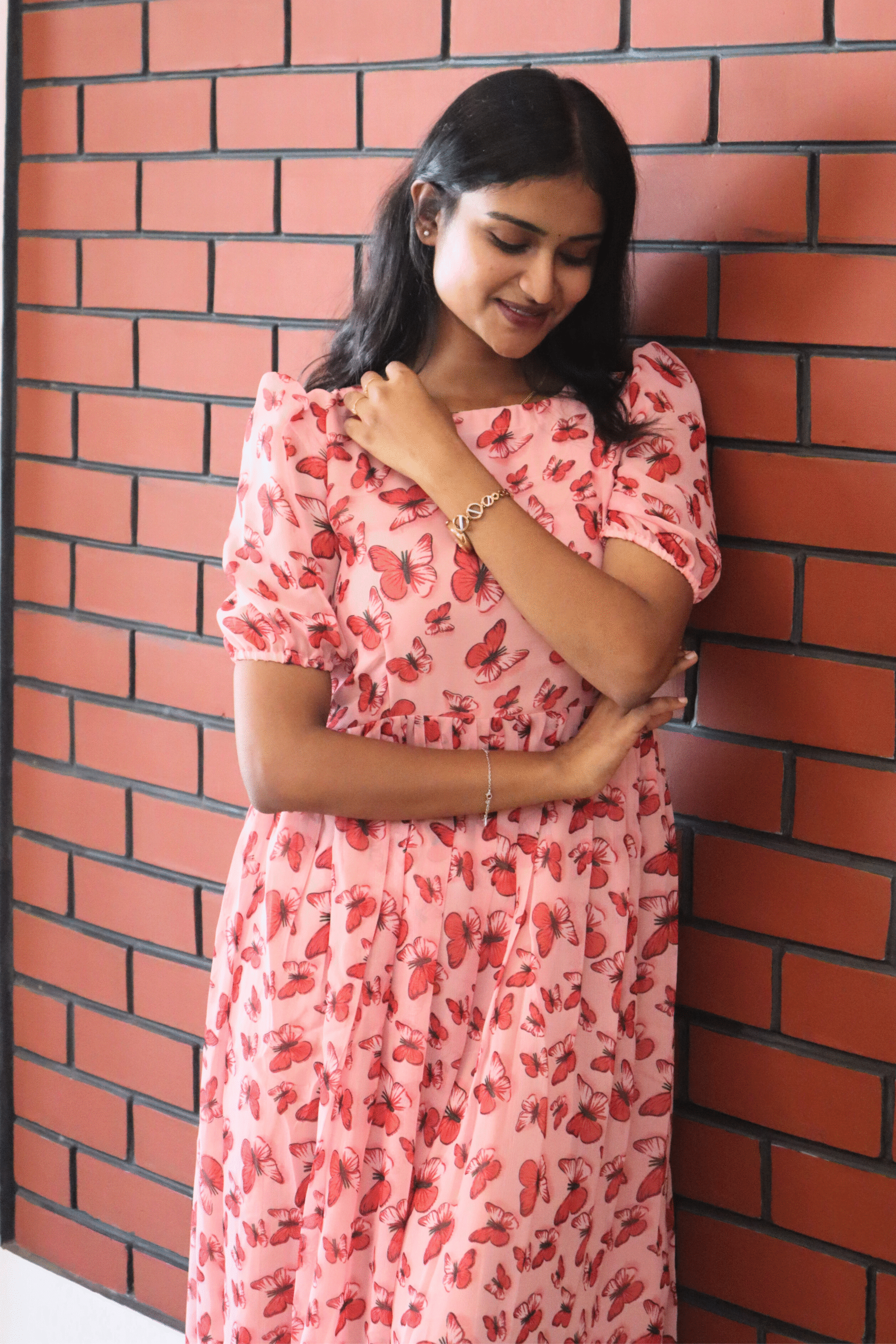 The subtle floral pattern and soft blush tone make it perfect for casual outings ☀️, brunch dates 🥐☕, office wear 👗, or evening get-togethers 🌙. Its flattering silhouette suits multiple body types, making it a versatile and timeless addition to your wardrobe ✨💫.