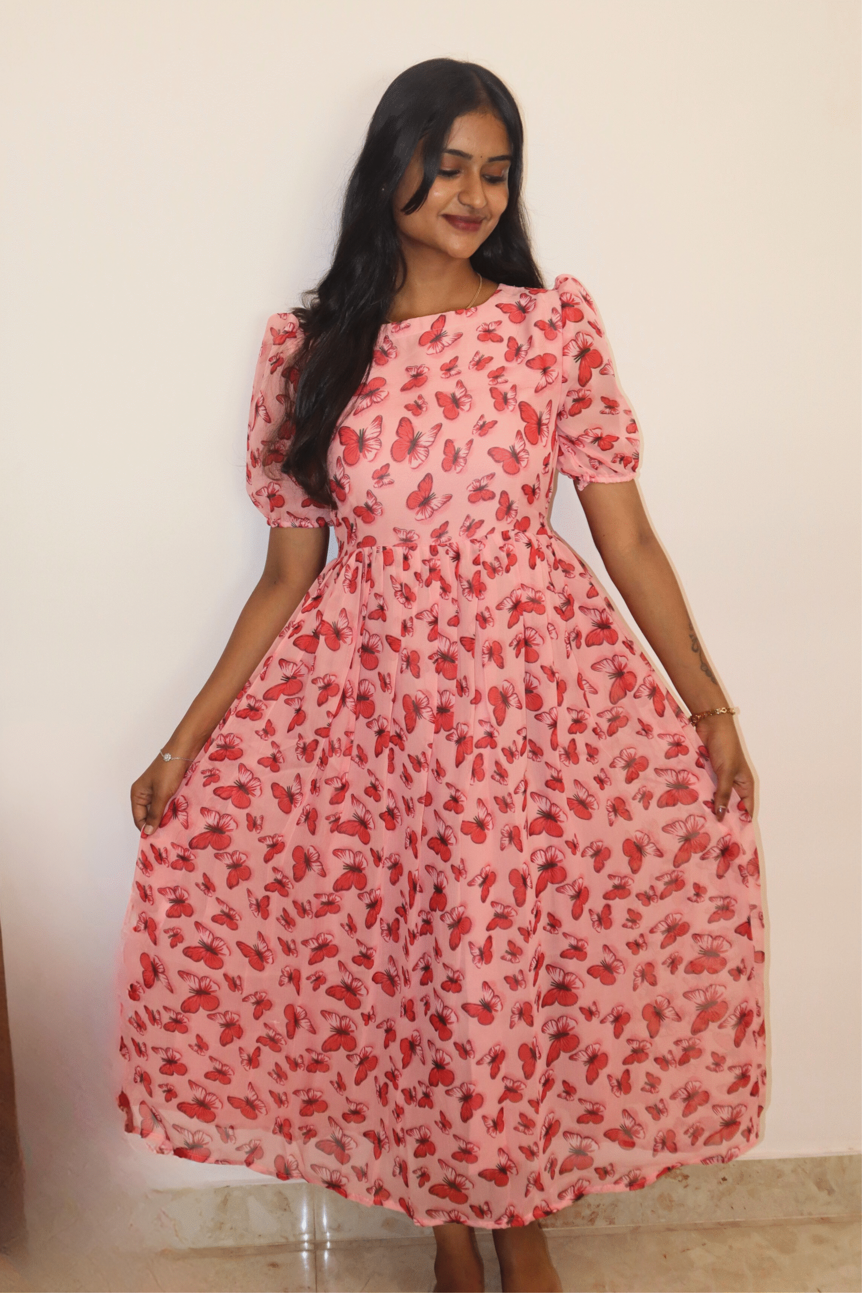 Soft, elegant, and effortlessly charming ✨ the Blush Breeze Georgette Midi Dress is designed for everyday grace and comfort 💕. Crafted from lightweight georgette fabric, this dress flows beautifully with every step 🌸, while the inner lining ensures a smooth and confident fit 🤍.
