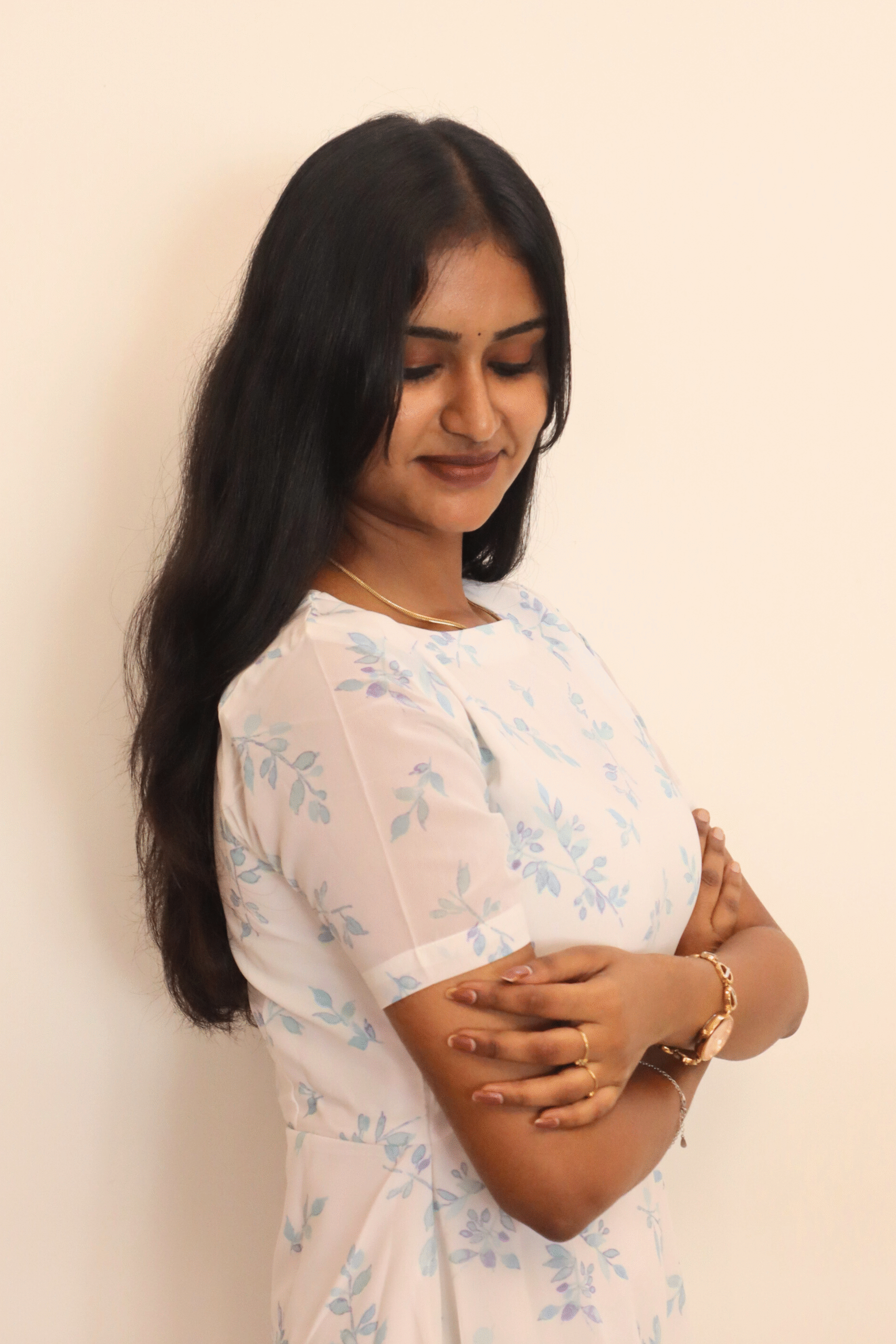 The subtle floral pattern and soft blush tone make it perfect for casual outings ☀️, brunch dates 🥐☕, office wear 👗, or evening get-togethers 🌙. Its flattering silhouette suits multiple body types, making it a versatile and timeless addition to your wardrobe ✨💫.