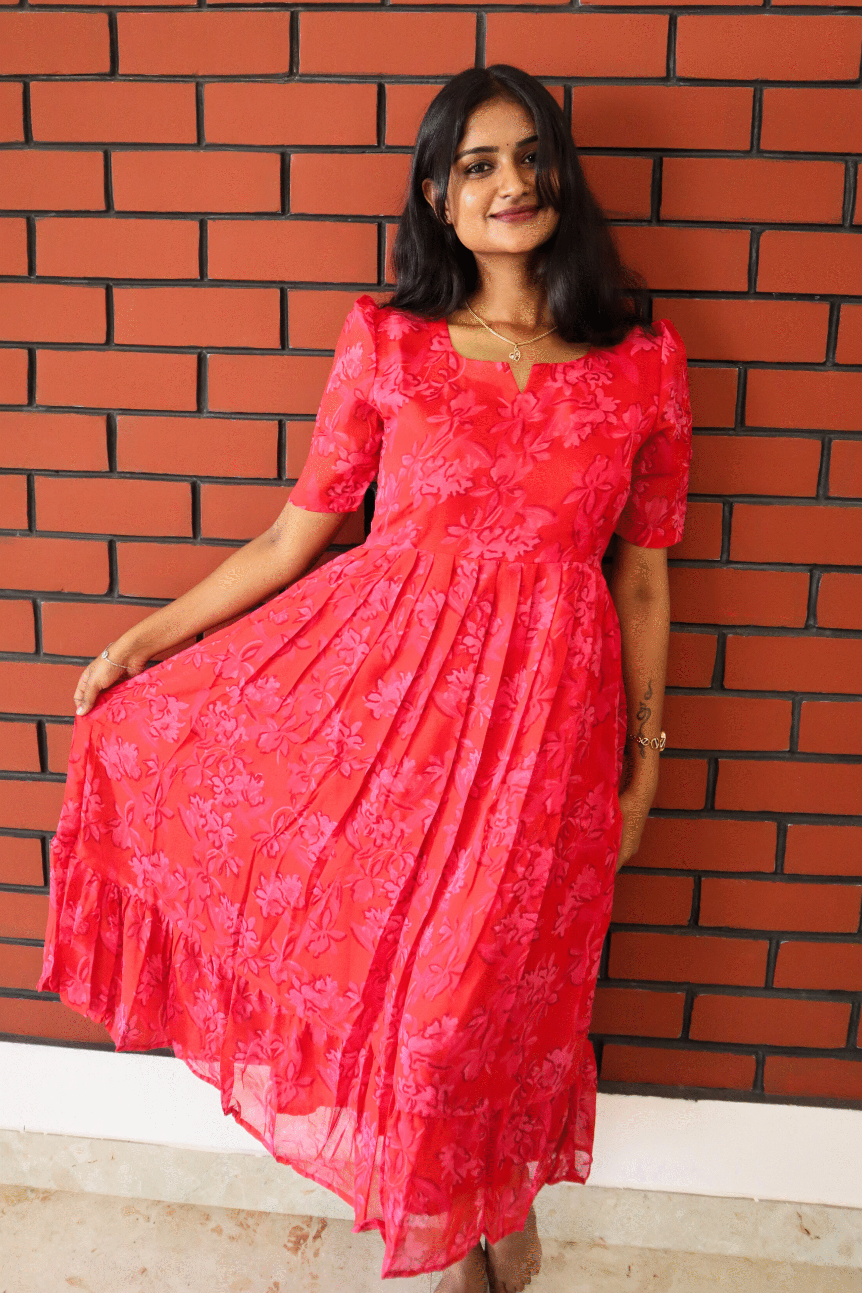 The subtle floral pattern and soft blush tone make it perfect for casual outings ☀️, brunch dates 🥐☕, office wear 👗, or evening get-togethers 🌙. Its flattering silhouette suits multiple body types, making it a versatile and timeless addition to your wardrobe ✨💫.
